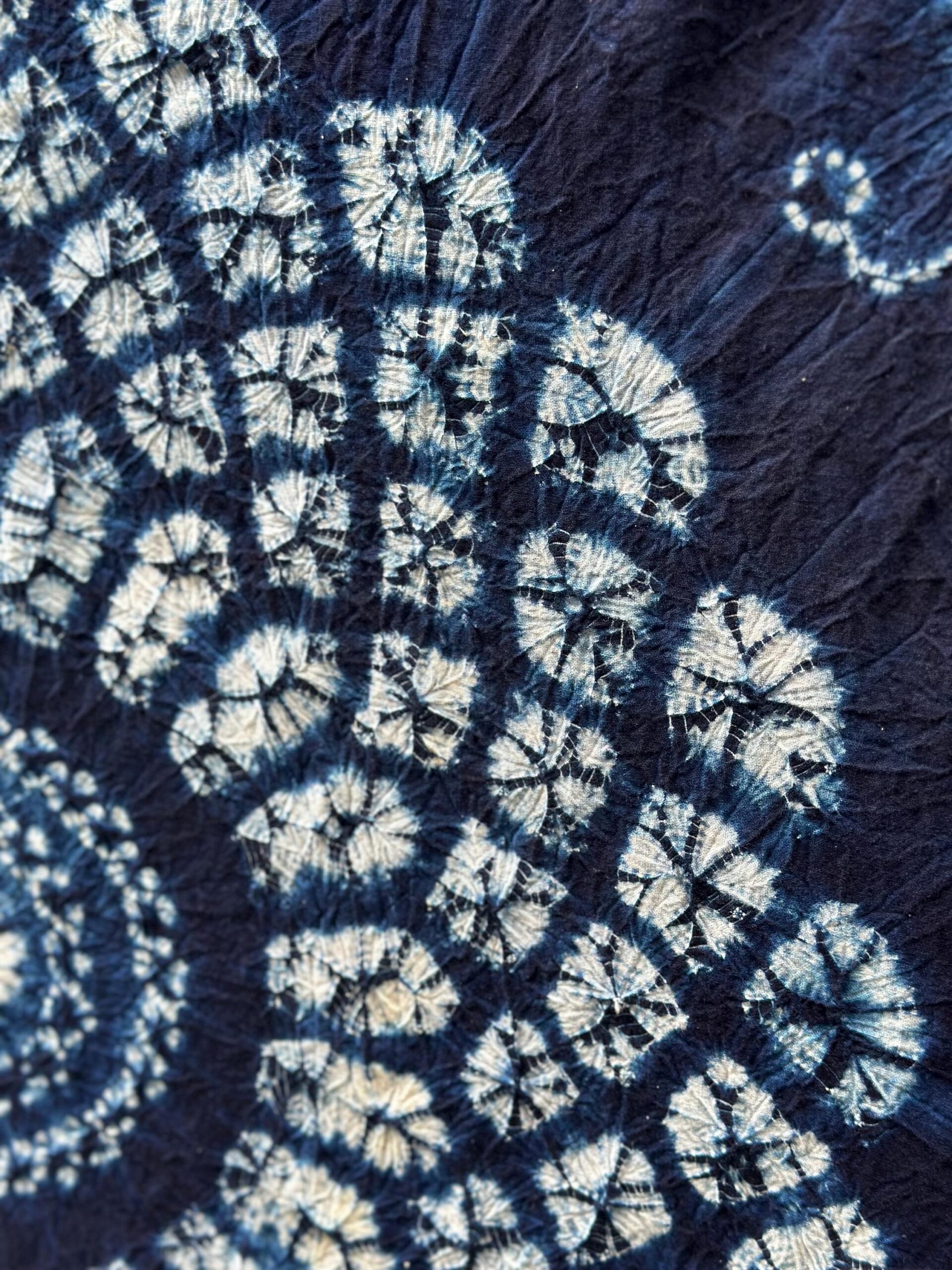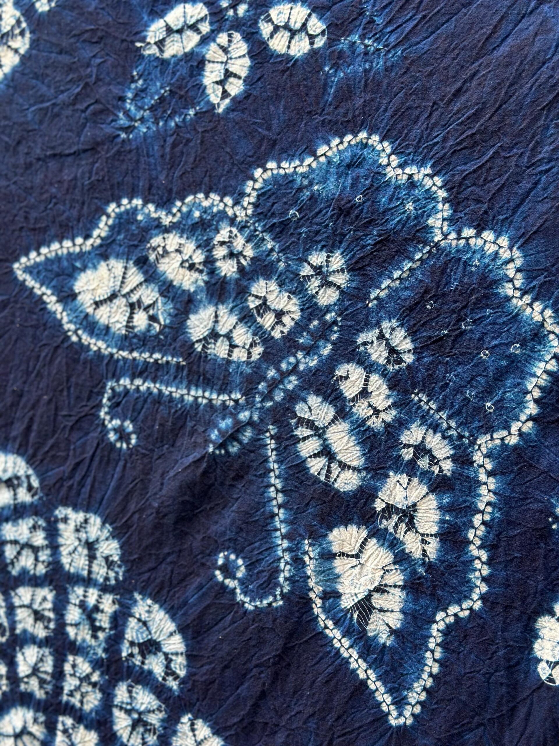 The soul of this craft comes from the natural indigo dye vat. The dye is mainly made from locally grown Indigofera plants (sometimes also Isatis root). It is not a simple dye bucket, but a living ecosystem that artisans tend to with great care, like nurturing a child. They feed it with natural “nutrients” and maintain its activity based on temperature, humidity, and sunlight. For this reason, every tie-dye piece is unique; it carries the distinct imprint of that day and that season, which cannot be replicated by industrial production.