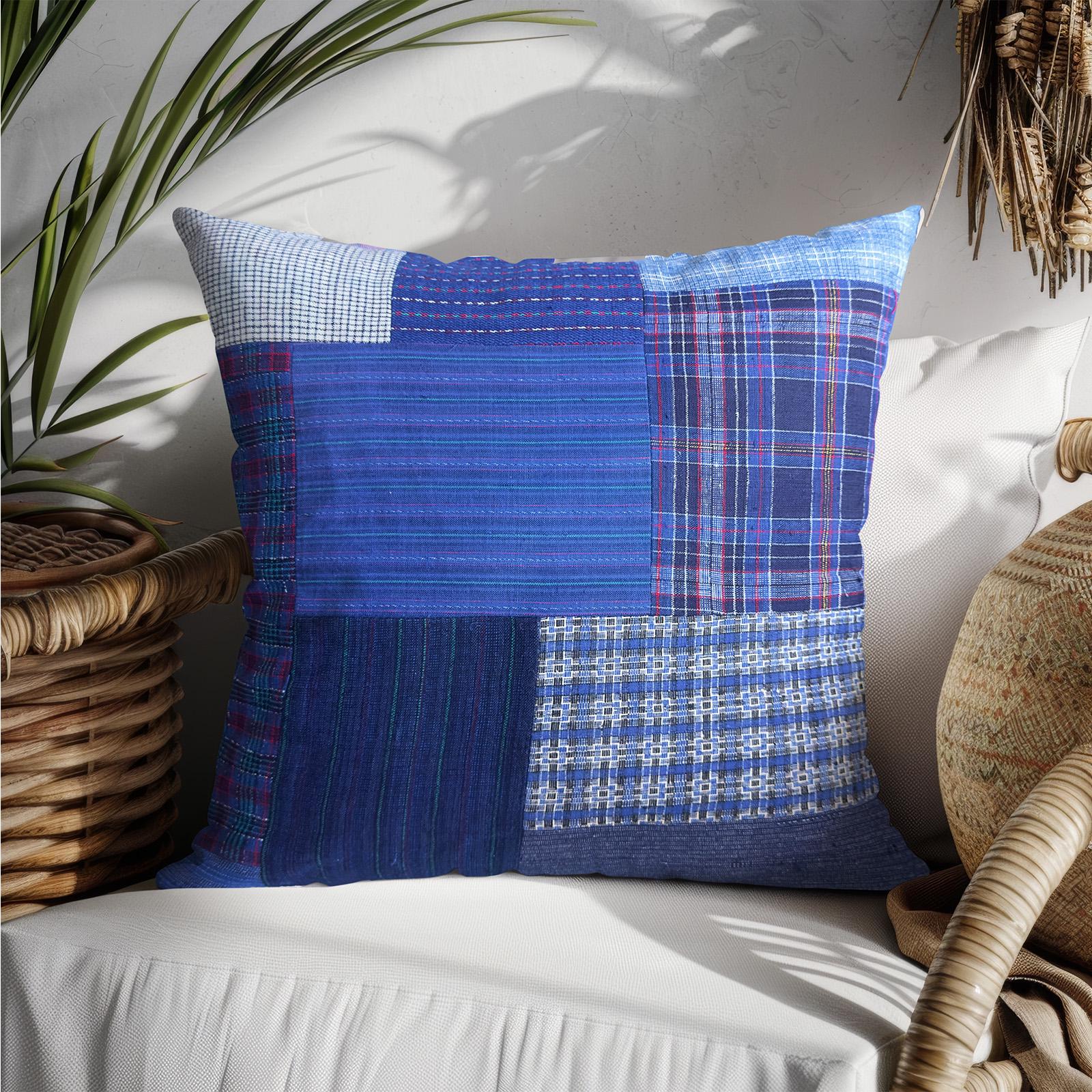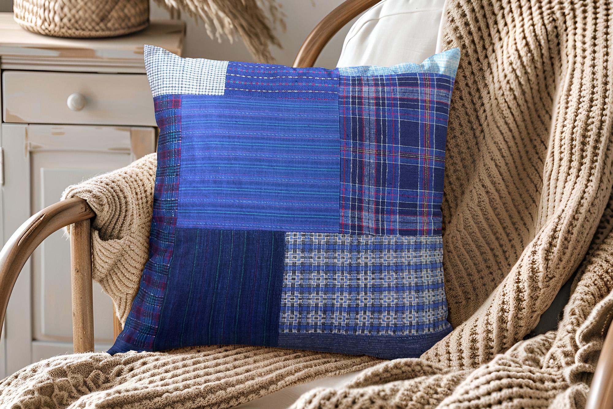 Bring rustic, vintage charm to your home decor with our handmade patchwork throw pillow covers. Made from handwoven cotton fabric in classic blue tones, it’s a unique addition to your decorative pillows—perfect for living rooms, bedrooms, or cozy nooks.