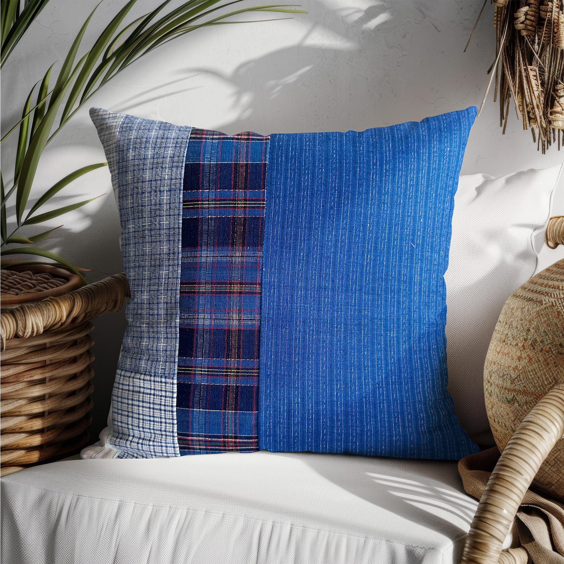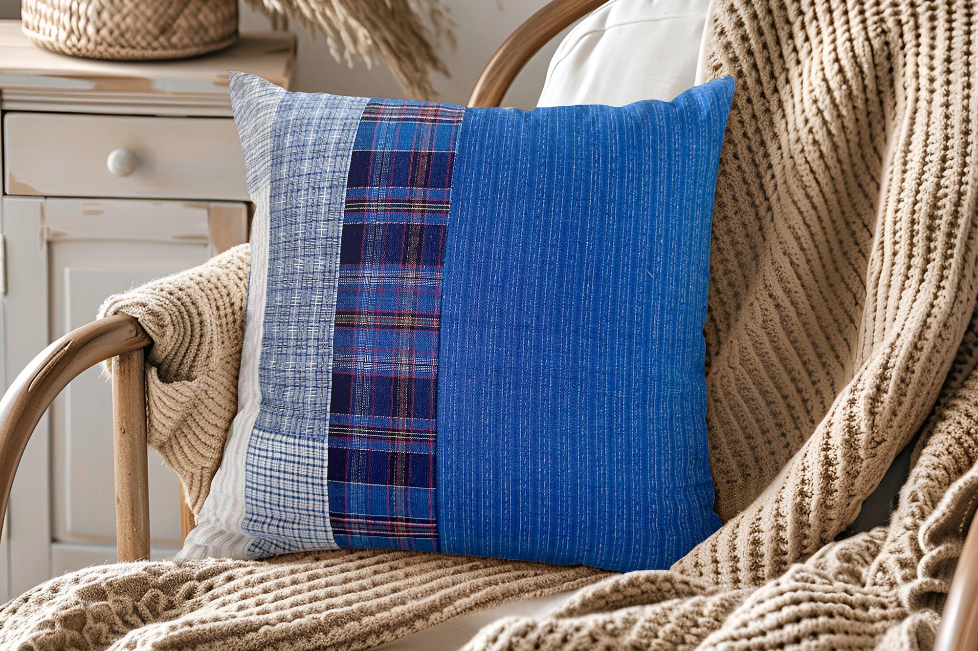 Bring rustic, vintage charm to your home decor with our handmade patchwork throw pillow covers. Made from handwoven cotton fabric in classic blue tones, it’s a unique addition to your decorative pillows—perfect for living rooms, bedrooms, or cozy nooks.